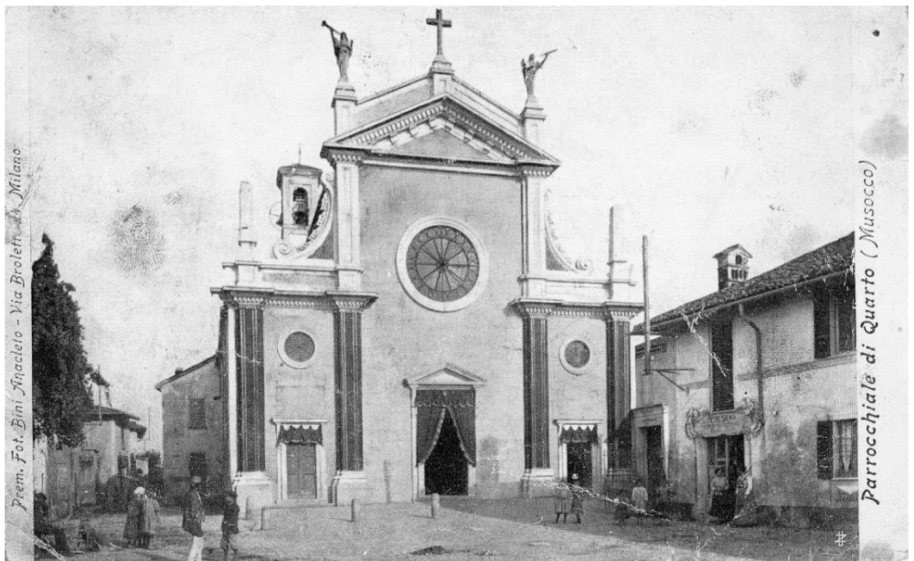 Il nucleo storico dell’ex Comune di Quarto Uglerio corrispondeva all’odierna Via Aldini dove tutt’intorno sorgevano cascine e piccoli insediamenti rurali con accenni di strade sterrate disegnate per raggiungere i terreni agricoli, le adiacenti frazioni e la chiesa dedicata ai SS. MM. Nazaro e Celso le cui origini sembrano risalire a rudimentale costruzione della fine del 1300 usata come luogo spirituale. La registrazione del 1° battesimo documentato presso la chiesa risale al 10 ottobre 1622. La chiesa nei secoli fu progressivamente ampliata fino al 1872 ma nel 1897 subì un grave incendio che la distrusse in larga parte risparmiando però la facciata. La chiesa viene prontamente restaurata grazie al contributo delle nobili famiglie Perelli-Cippo proprietarie dell’adiacente corte di via Aldini 37 e nuovamente riconsacrata dal Cardinale Andrea Carlo Ferrari il 21 aprile del 1900.