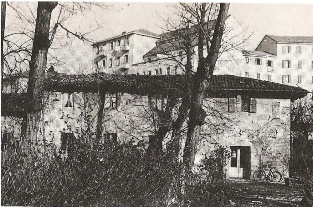 Due grandi ippocastani a formare una specie di invito per l’ingresso, poi un piccolo giardino sulla sinistra con dei tavoli in pietra, di fronte un cortiletto con una stretta porta che immette nell’osteria; su un lato, a filo del marciapiede di Via Mantegazza, un parapetto di cemento, originariamente posto a protezione dei passanti, resta a testimoniare l’antica presenza in luogo dell’alveo di un fontanile: ecco la Melgasciada alla metà degli anni Cinquanta del Novecento, gli ultimi della sua plurisecolare esistenza.