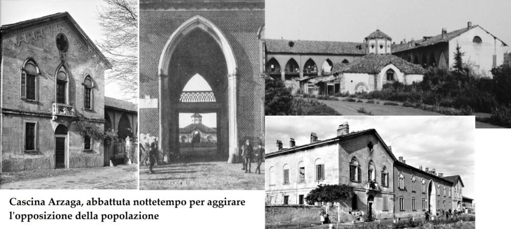 La cascina Arzaga (di cui si conserva il toponimo nella relativa via) poteva essere considerata in assoluto una delle più belle cascine del territorio milanese. La maestosa cascina fu demolita nottetempo negli anni ’60 tra le vibrate proteste della popolazione. La cascina faceva parte dell’esteso latifondo denominato di Lorentecchio, di proprietà della soppressa Abbazia di S. Vittore al Corpo.