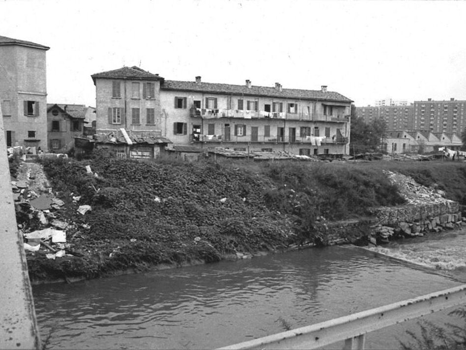 Prospettiva del vecchio borgo dal ponte del Lambro, 1960