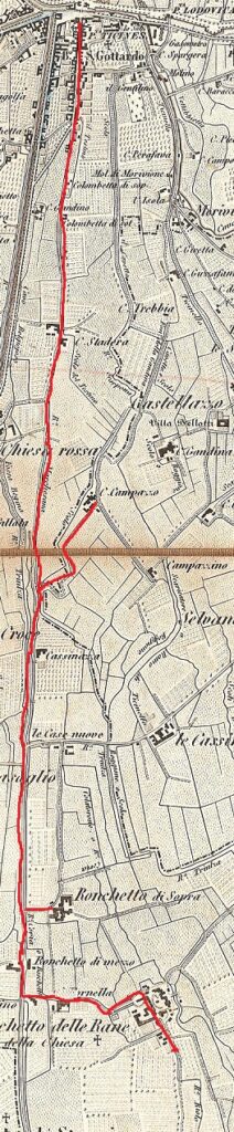 Poco oltre, sulla destra, avremmo infatti incontrato Ronchetto di Mezzo, oggi cascina Ronchettino, di cui sono rimaste solo poche tracce degli edifici originari.