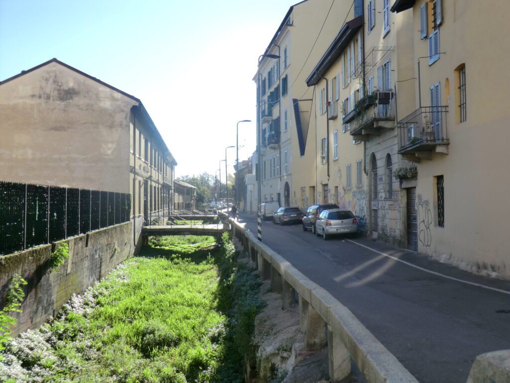 Per questo nostro dodicesimo e ultimo itinerario nel sud della Milano del 1865 ci muoveremo partendo dal Borgo della Ripa, ossia da quelle case che si trovavano (e molte delle quali si trovano ancora) in Ripa di Porta Ticinese e Alzaia Naviglio Grande nei pressi della Darsena: in particolare, iniziamo seguendo la già citata roggia Boniforti che, provenendo un tempo dalla roggia Lavandai (omonimo vicolo) proseguiva costeggiando la via Argelati, prendendo appunto il nome di roggia Boniforti. Sulla via si affacciano ancora oggi parecchie case dotate di un ponticello per potervi accedere scavalcando il corso d’acqua.