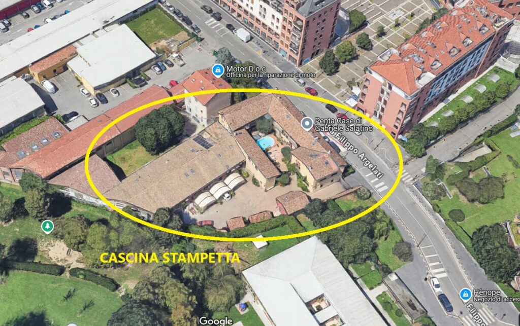Subito dopo, un sentiero sulla destra ci avrebbe portato alla Cascina Maggiore, tuttora visibile in via Schievano 12: essa era nota anche come Cascina Monastero Maggiore, per ricordare la sua originaria appartenenza all’istituzione ecclesiastica: ora ospita uno studio di architettura.