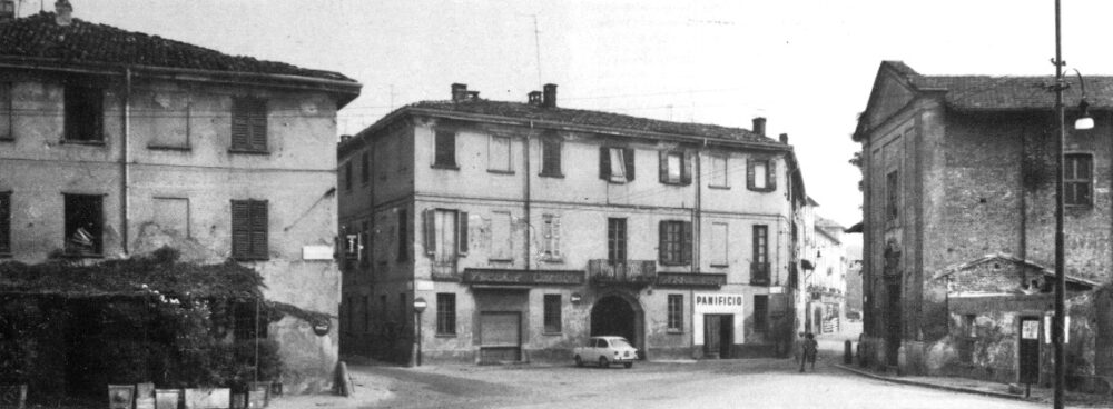 Il complesso delle Cascine Abbadesse con la chiesetta dei SS. Carlo e Vitale, negli anni 60 (Milano Policroma)